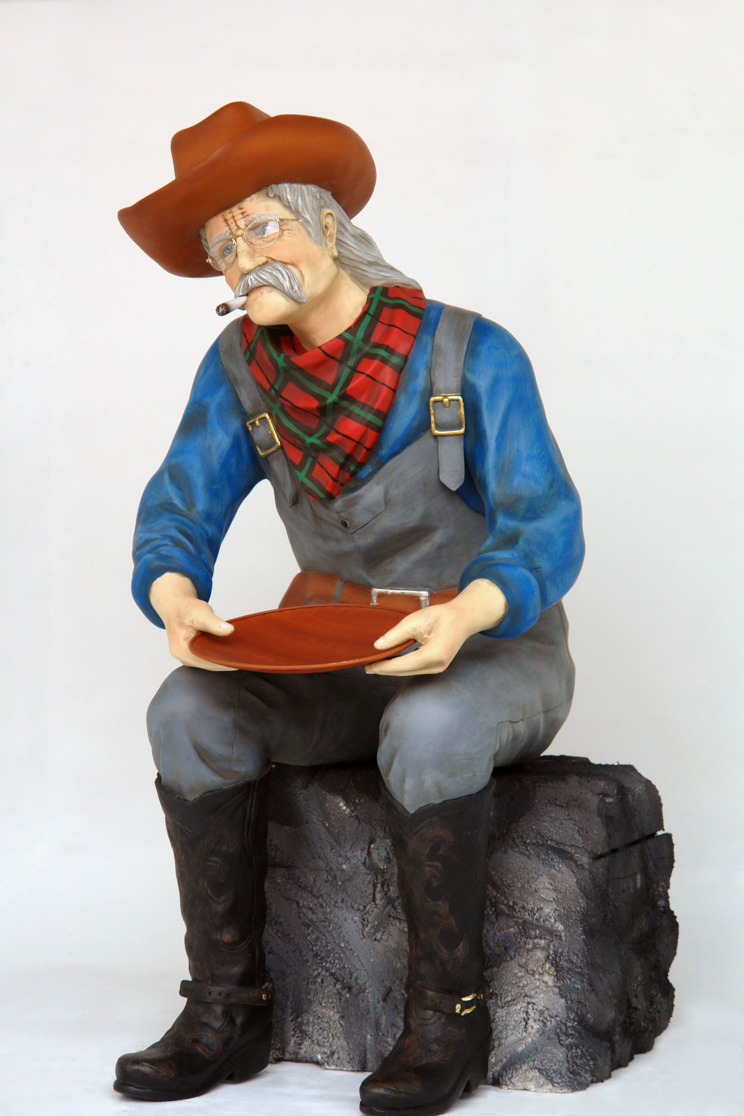 Gold panner sitting down statue