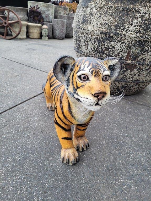 Add a touch of the wild with this adorable tiger cub standing statue. Carefully crafted with realistic markings and detailed features, this charming piece captures the playful and curious nature of a young tiger.