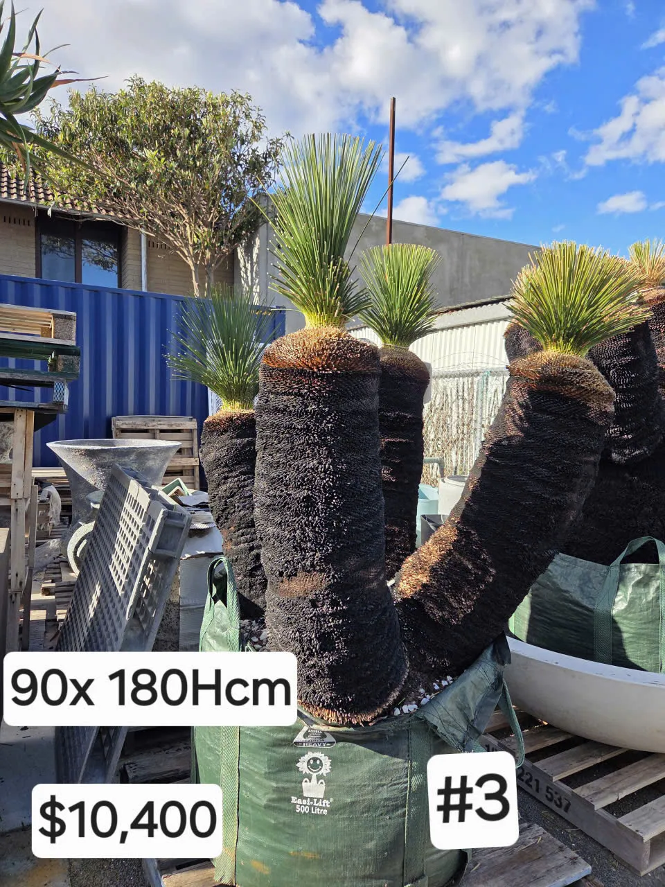 We have 5 x Xanthorrhoea (Balga black boy) trees, 220 to 280 years old plus 1 x dragon tree for sale as a bulk lot.