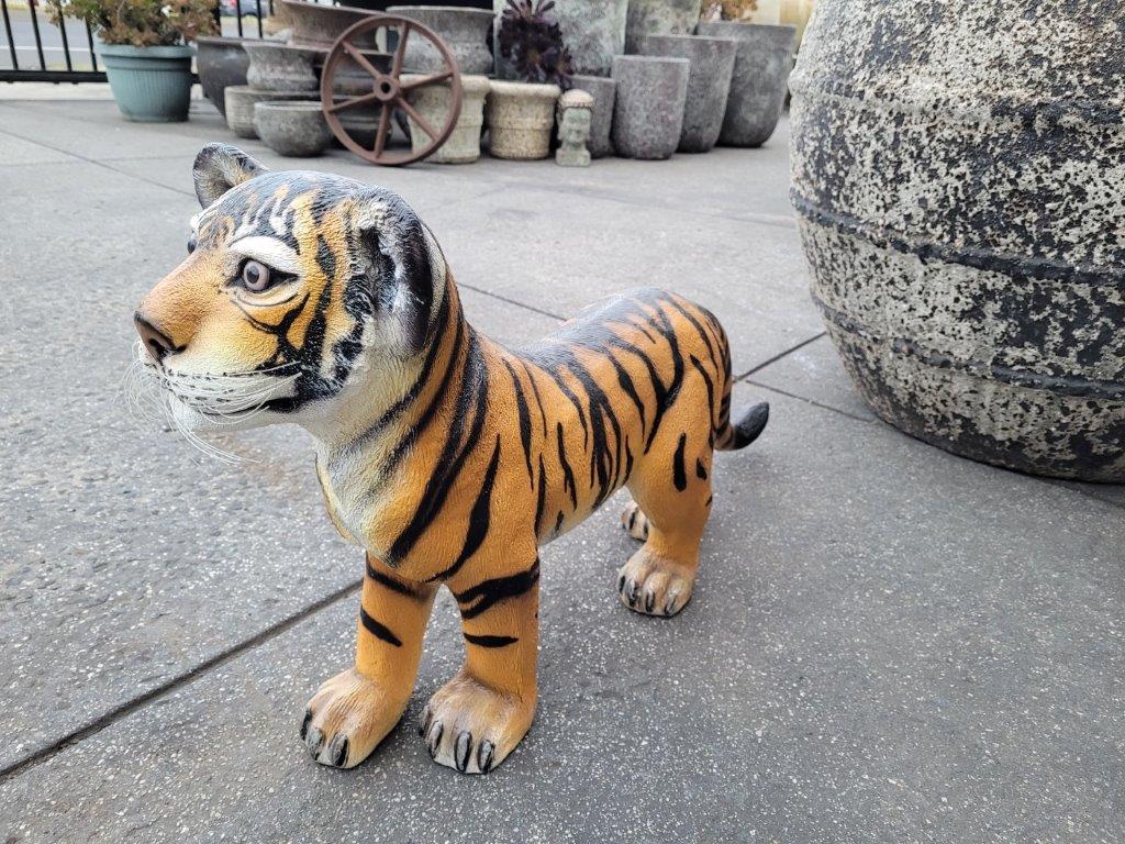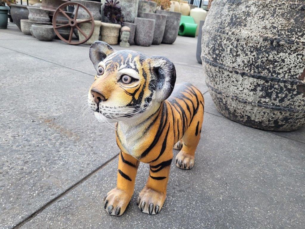 Add a touch of the wild with this adorable tiger cub standing statue. Carefully crafted with realistic markings and detailed features, this charming piece captures the playful and curious nature of a young tiger.